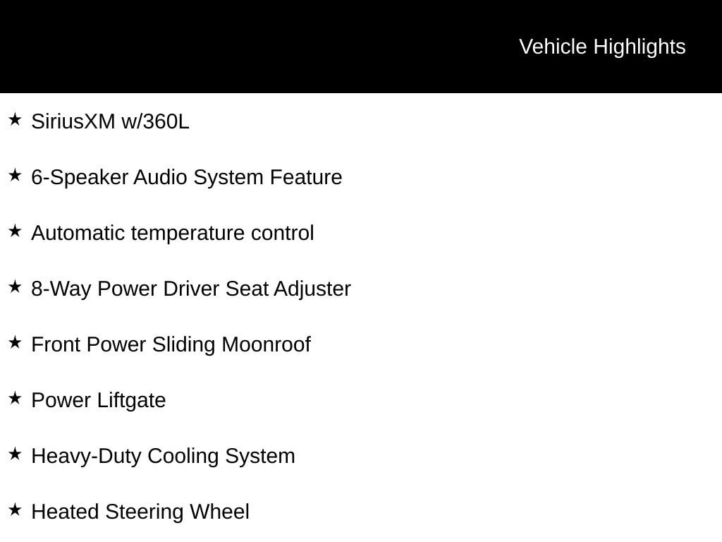 - This vehicle is equipped with SiriusXM with 360L. This advanced in-car technology will guide you to the most SiriusXM channels, shows and exclusive content for a ride that's uniquely you, with personalization features to make discovering your perfect soundtrack easier than ever before
