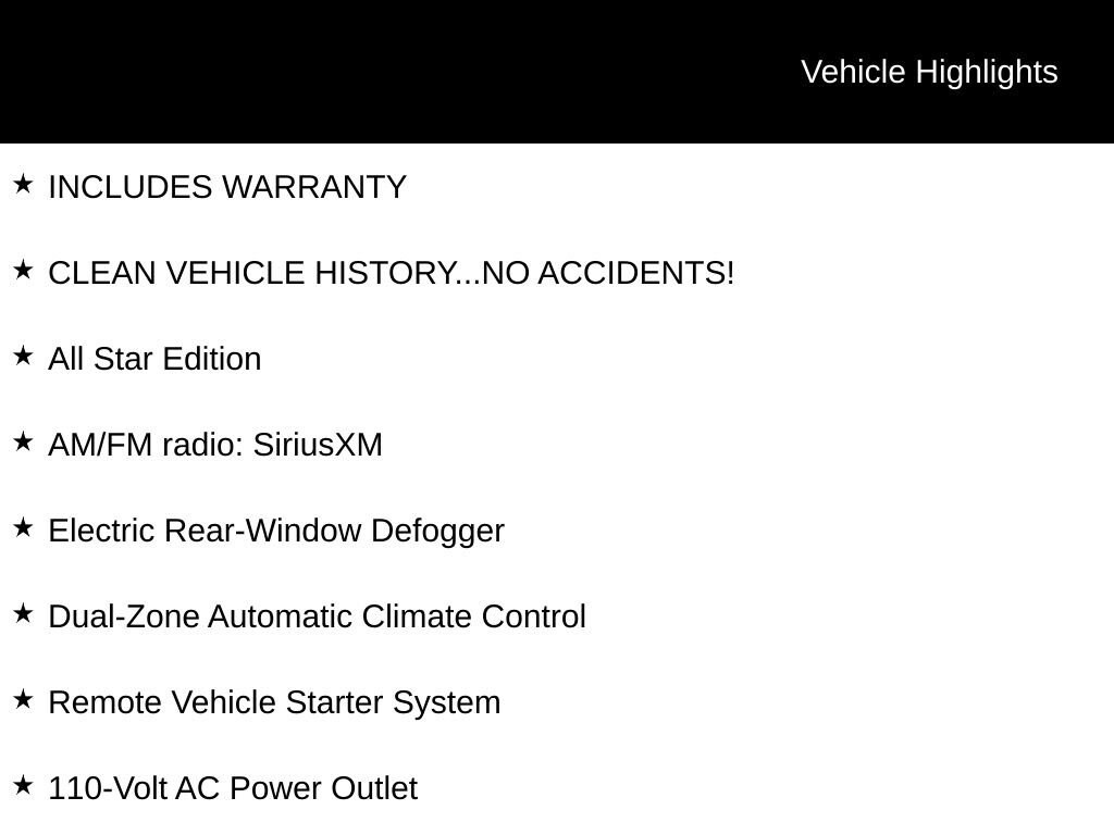 Priced below KBB Fair Purchase Price! INCLUDES WARRANTY, CLEAN VEHICLE HISTORY...NO ACCIDENTS!, 4D Crew Cab, EcoTec3 5.3L V8, 4WD, 110-Volt AC Power Outlet, All Star Edition, AM/FM radio: SiriusXM, Dual-Zone Automatic Climate Control, Electric Rear-Window Defogger, Remote Vehicle Starter System, Theft Deterrent System (Unauthorized Entry).