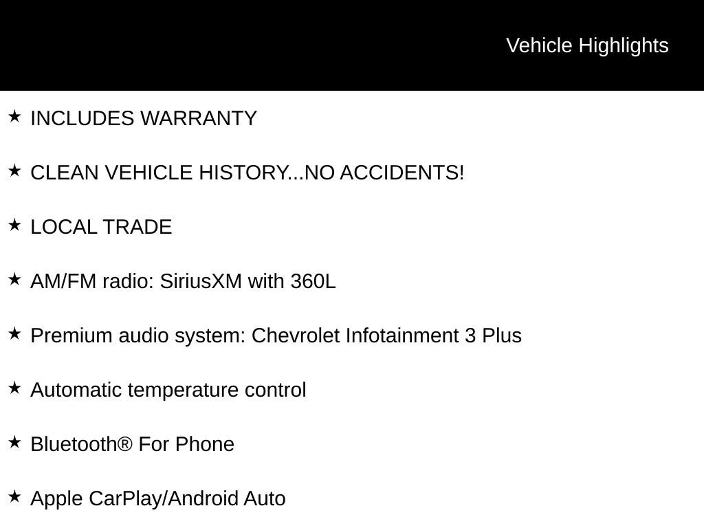 - Chevrolet Infotainment 3 Premium system with connected Navigation1 and 8" diagonal HD color touchscreen