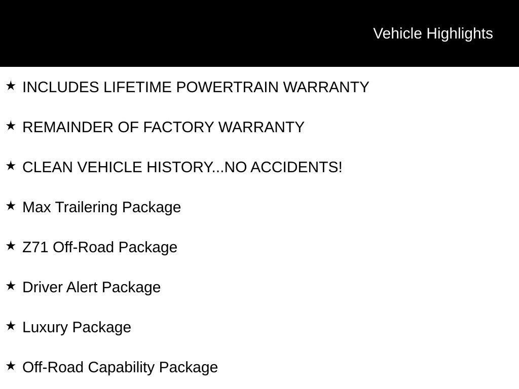 - Z71® Off-Road Package (Limited Availability-Currently Not Orderable):