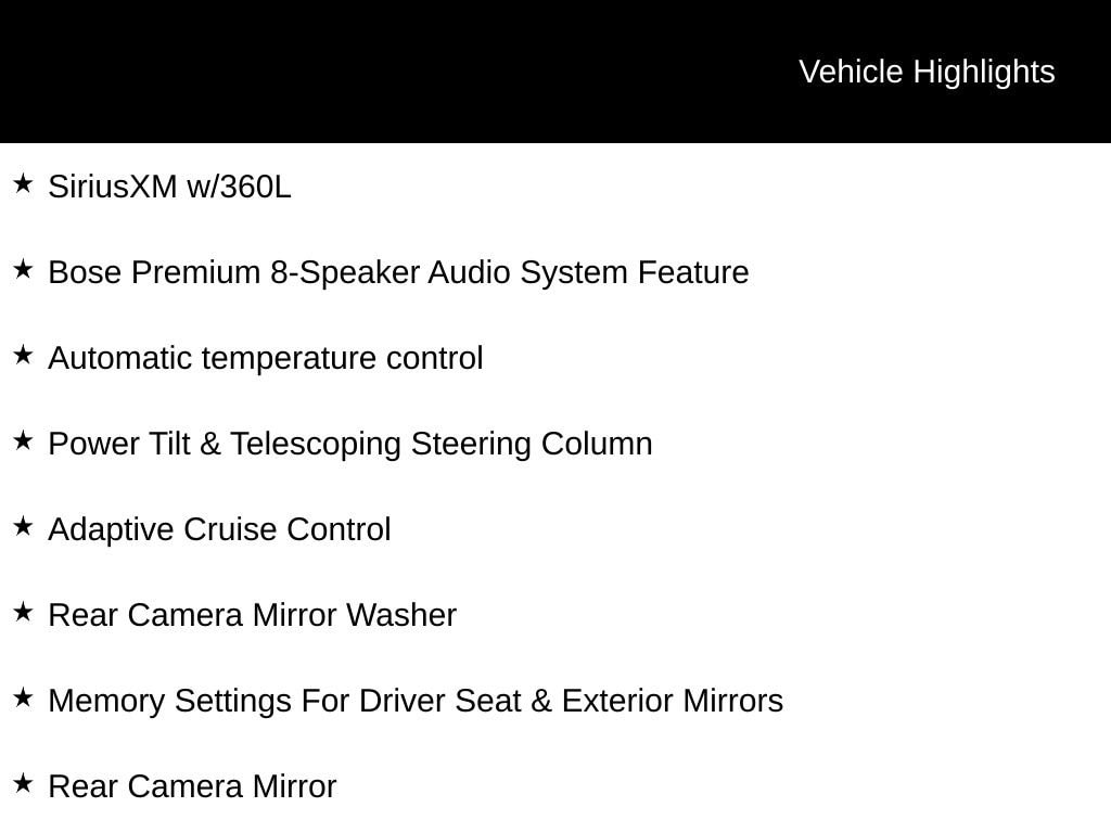 - This vehicle is equipped with SiriusXM with 360L. This advanced in-car technology will guide you to the most SiriusXM channels, shows and exclusive content for a ride that's uniquely you, with personalization features to make discovering your perfect soundtrack easier than ever before