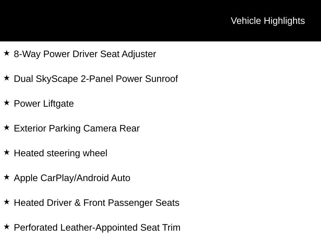 - Dual SkyScape® 2-panel power sunroof: