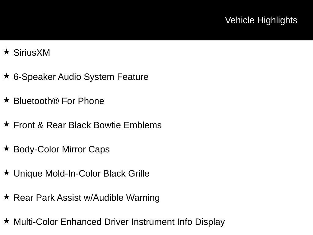 INCLUDES LIFETIME POWERTRAIN WARRANTY, REMAINDER OF FACTORY WARRANTY, CLEAN VEHICLE HISTORY...NO ACCIDENTS!, 2-Way Power Driver Lumbar Control Seat Adjuster, 6-Speaker Audio System Feature, Bluetooth® For Phone, Body-Color Mirror Caps, Deep-Tinted Rear Glass, Driver 8-Way Power Seat Adjuster, Driver Confidence II Package, Front & Rear Black Bowtie Emblems, Lane Change Alert w/Side Blind Zone Alert, LS Convenience Package, Midnight Edition, Multi-Color Enhanced Driver Instrument Info Display, Radio: Chevrolet Infotainment 3 System w/AM/FM, Rear Cross Traffic Alert, Rear Park Assist w/Audible Warning, SiriusXM, Sport Edition, Unique Mold-In-Color Black Grille, Wheels: 18 Gloss Black Aluminum.