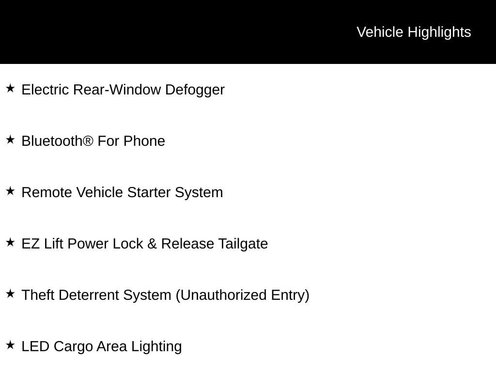 - EZ Lift power lock and release tailgate
