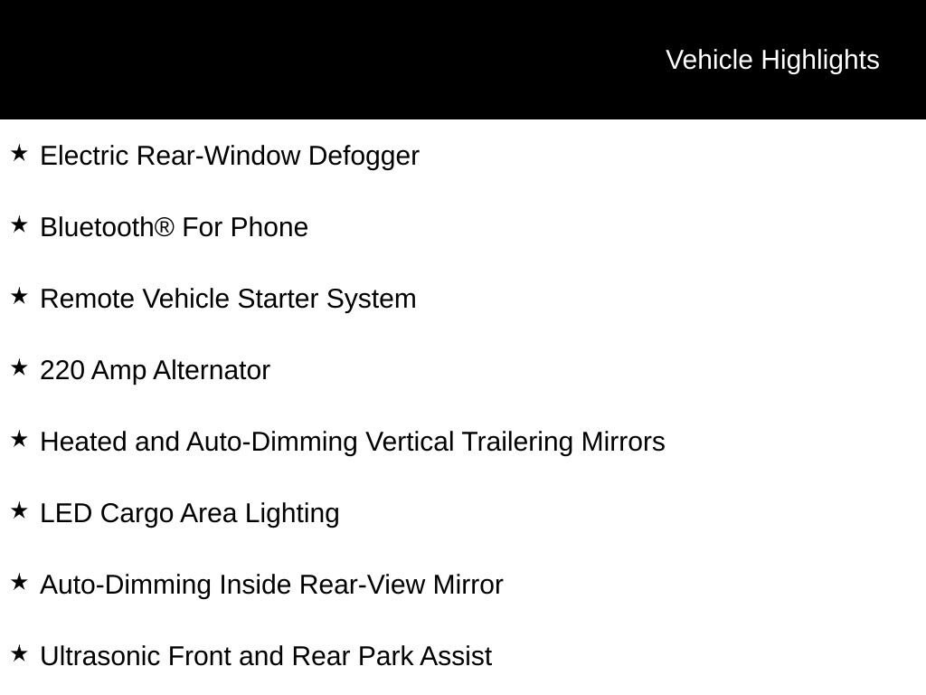 - Black outside power-adjustable vertical trailering mirrors with power folding/manual extending auto-dimming driver upper glass: