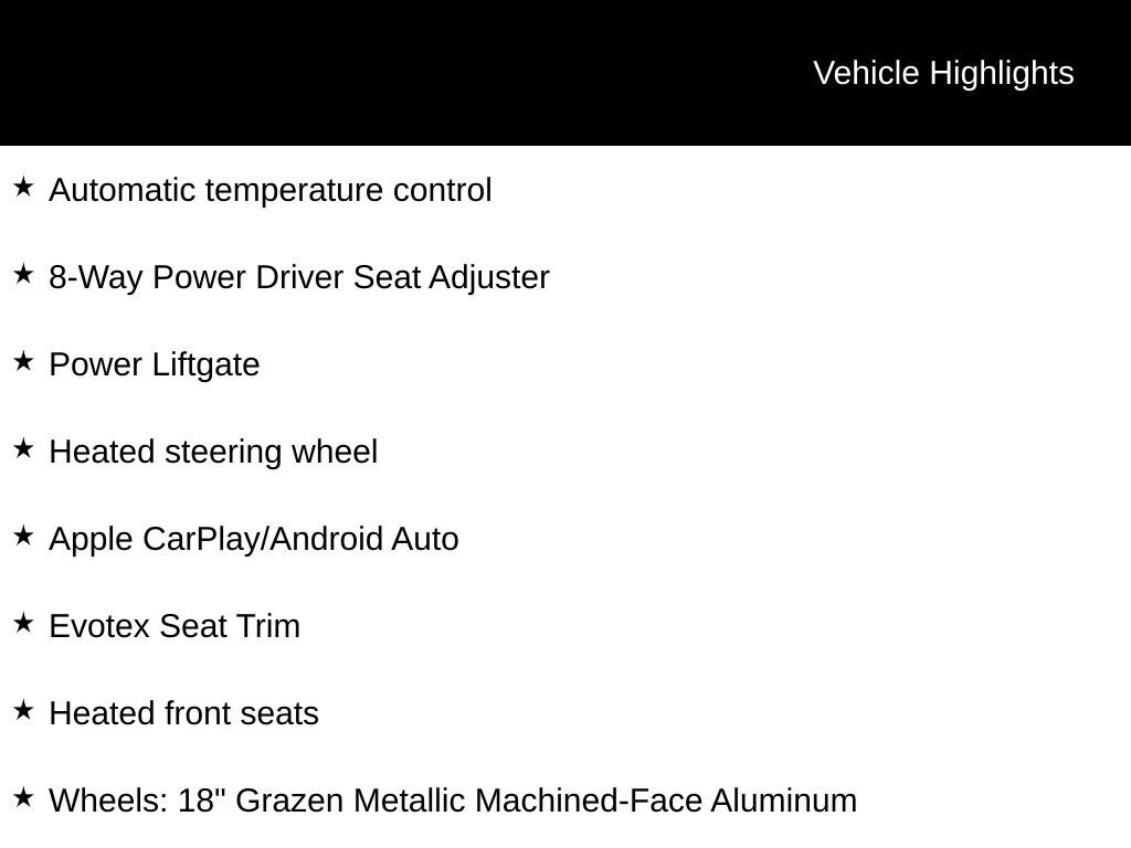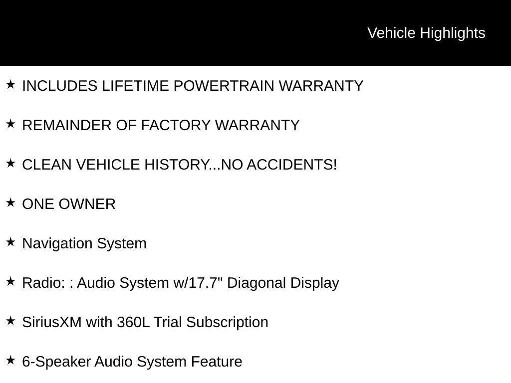 INCLUDES LIFETIME POWERTRAIN WARRANTY, REMAINDER OF FACTORY WARRANTY, CLEAN VEHICLE HISTORY...NO ACCIDENTS!, ONE OWNER, 6-Speaker Audio System Feature, 8-Way Power Driver Seat Adjuster, Apple CarPlay/Android Auto, Automatic temperature control, Evotex Seat Trim, Heated front seats, Heated steering wheel, Navigation System, Power Liftgate, Radio: : Audio System w/17.7 Diagonal Display, SiriusXM with 360L Trial Subscription, Wheels: 18 Grazen Metallic Machined-Face Aluminum.Recent Arrival! 20/27 City/Highway MPG Odometer is 24176 miles below market average!For over 50 years, Tom Ahl has been committed to earning your business, trust and friendship by providing you with the greatest value in a vehicle for the lowest cost to you. We offer full disclosure with every vehicle by providing a complimentary Autocheck vehicle history report and a copy of repairs made following our extensive 72 point inspection. For a deal so good it'll knock your socks off, visit Tom Ahl's today!