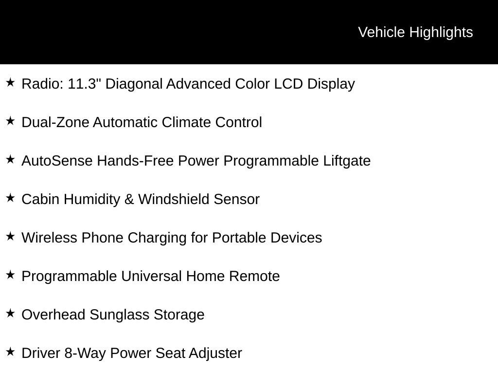 - Automatic on/off feature with walk-up/exit animation and sequential/swipe turn signal.