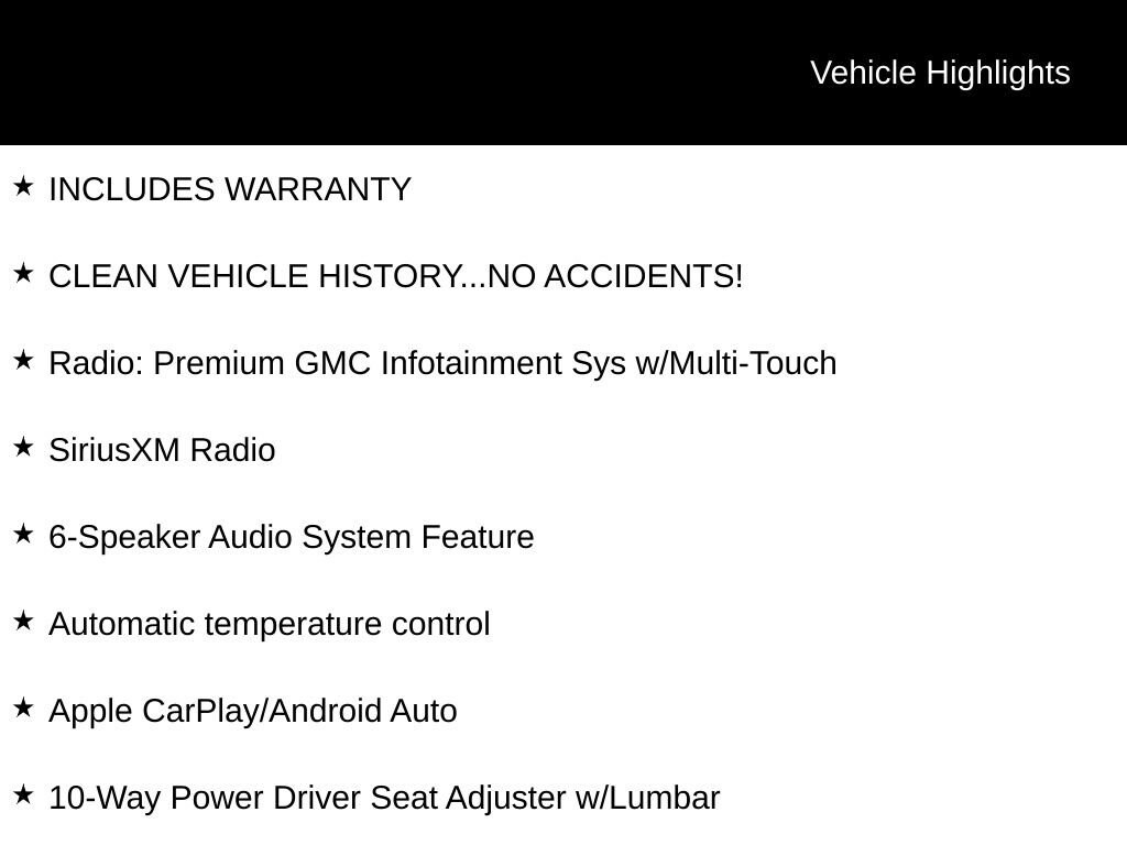 INCLUDES WARRANTY, CLEAN VEHICLE HISTORY...NO ACCIDENTS!, 4D Crew Cab, EcoTec3 6.2L V8, 4WD, 10-Way Power Driver Seat Adjuster w/Lumbar, 6-Speaker Audio System Feature, Apple CarPlay/Android Auto, Automatic temperature control, Heated Driver & Front Passenger Seating, Hitch Guidance w/Hitch View, Radio: Premium GMC Infotainment Sys w/Multi-Touch, SiriusXM Radio, Wheels: 18 x 8.5 6-Spoke Machined Aluminum.Recent Arrival!For over 50 years, Tom Ahl has been committed to earning your business, trust and friendship by providing you with the greatest value in a vehicle for the lowest cost to you. We offer full disclosure with every vehicle by providing a complimentary Autocheck vehicle history report and a copy of repairs made following our extensive 72 point inspection. For a deal so good it'll knock your socks off, visit Tom Ahl's today!