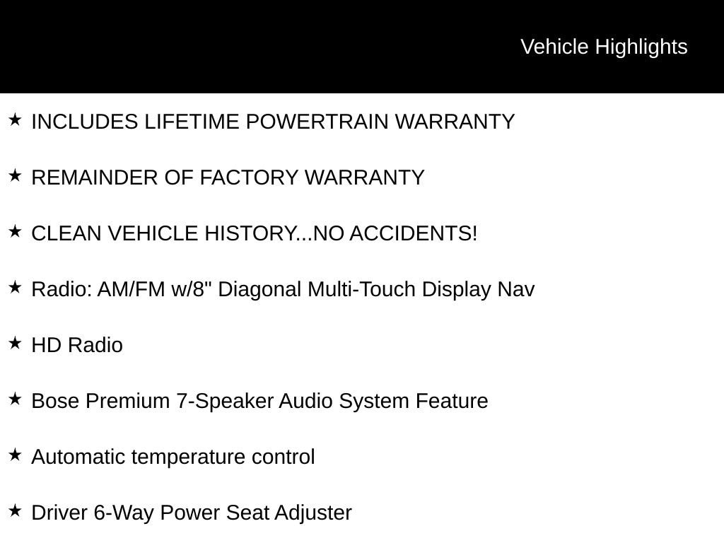 - Bose® is renowned for expert sound engineering and high-quality audio and with premium speakers positioned throughout the cabin, you'll get rich, concert-like sound
