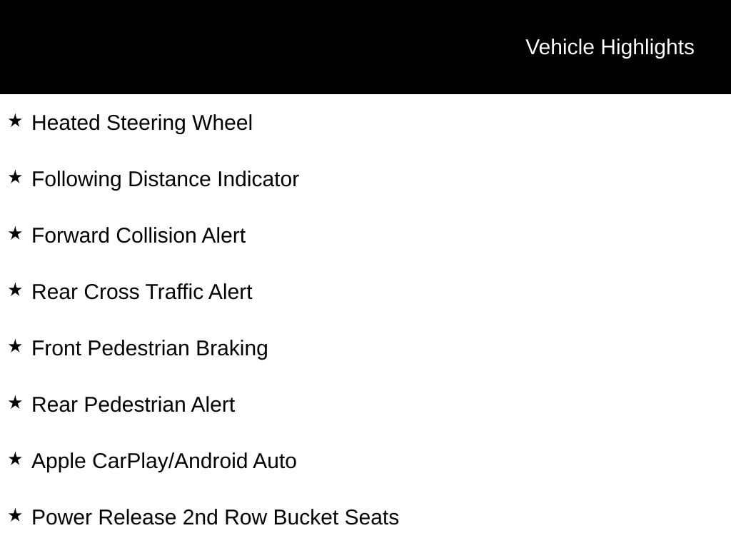 - Not Equipped with Front and Rear Park Assist and Reverse Automatic Braking: