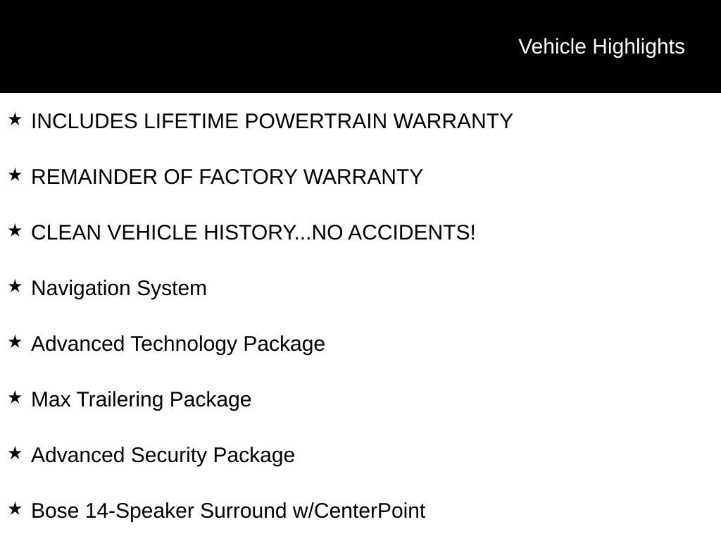 INCLUDES LIFETIME POWERTRAIN WARRANTY, REMAINDER OF FACTORY WARRANTY, CLEAN VEHICLE HISTORY...NO ACCIDENTS!, 4WD, 15 Diagonal Multi-Color Head-Up Display, Adaptive Cruise Control, Advanced Security Package, Advanced Technology Package, AM/FM radio: SiriusXM with 360L, Apple CarPlay/Android Auto, Automatic temperature control, Bose 14-Speaker Surround w/CenterPoint, Dual-Pane Panoramic Power Sunroof, Enhanced Automatic Emergency Braking, Front Pedestrian Braking, Hands-Free Power Programmable Rear Liftgate, HD Surround Vision, Heads-Up Display, Heated & Ventilated Driver & Front Passenger Seats, Heated rear seats, Heated Steering Wheel, Inside Rearview Auto-Dimming Rear Camera Mirror, Lane Change Alert w/Side Blind Zone Alert, Lane Keep Assist w/Lane Departure Warning, Max Trailering Package, Navigation System, Perforated Leather Seating Surfaces, Power Liftgate, Rear Camera Mirror Washer, Rear Cross Traffic Alert, Rear Pedestrian Alert, Reverse Automatic Braking, Wheels: 20 x 9 6-Spoke Polished Aluminum.Recent Arrival! Odometer is 1744 miles below market average!For over 50 years, Tom Ahl has been committed to earning your business, trust and friendship by providing you with the greatest value in a vehicle for the lowest cost to you. We offer full disclosure with every vehicle by providing a complimentary Autocheck vehicle history report and a copy of repairs made following our extensive 72 point inspection. For a deal so good it'll knock your socks off, visit Tom Ahl's today!