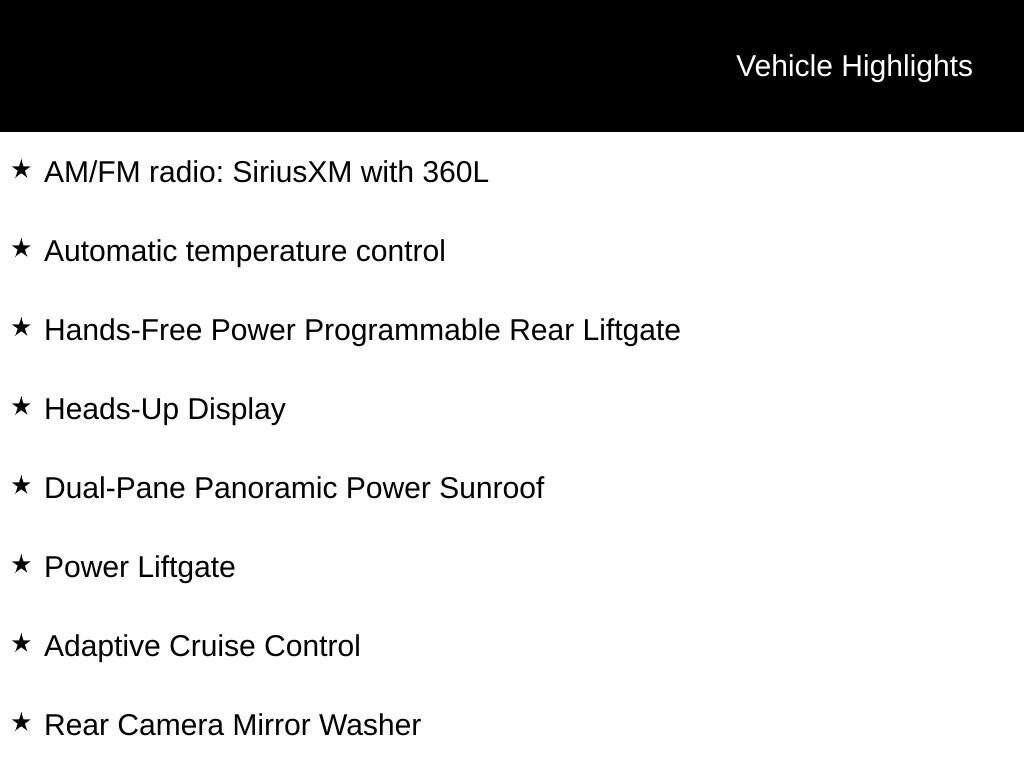 - This vehicle is equipped with SiriusXM with 360L. This advanced in-car technology will guide you to the most SiriusXM channels, shows and exclusive content for a ride that's uniquely you, with personalization features to make discovering your perfect soundtrack easier than ever before