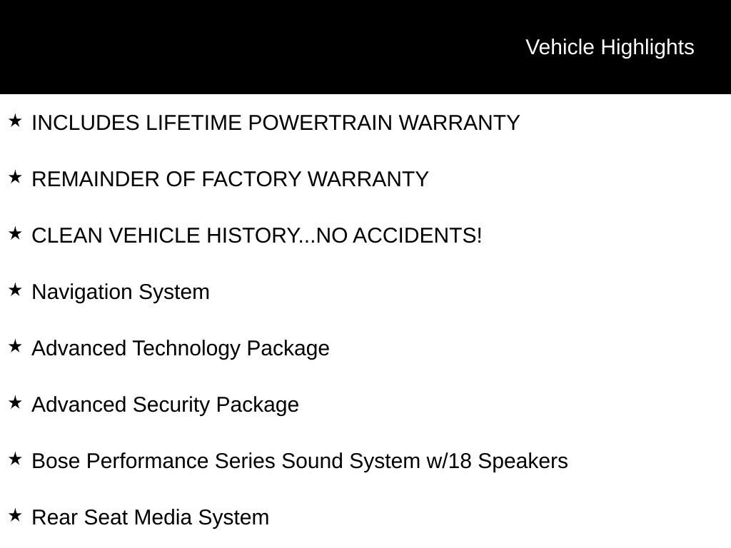 INCLUDES LIFETIME POWERTRAIN WARRANTY, REMAINDER OF FACTORY WARRANTY, CLEAN VEHICLE HISTORY...NO ACCIDENTS!, 4WD, 15 Diagonal Multi-Color Head-Up Display, Advanced Security Package, Advanced Technology Package, AM/FM radio: SiriusXM with 360L, Automatic temperature control, Bose Performance Series Sound System w/18 Speakers, Dual-Pane Panoramic Power Sunroof, Enhanced Automatic Parking Assist, Full Grain Leather Seats, Hands-Free Power Programmable Rear Liftgate, Heads-Up Display, Heated & Ventilated Driver & Front Passenger Seats, Heated rear seats, Inside Rearview Auto-Dimming Rear Camera Mirror, Navigation System, Power Liftgate, Rear Camera Mirror Washer, Rear Seat Media System, Reverse Automatic Braking, Super Cruise, Vehicle Inclination Sensor, Vehicle Interior Movement Sensor, Wheel Locks (Set of 4) (LPO), Wheels: 22 7-Spoke Ultra-Bright Machined.Recent Arrival!For over 50 years, Tom Ahl has been committed to earning your business, trust and friendship by providing you with the greatest value in a vehicle for the lowest cost to you. We offer full disclosure with every vehicle by providing a complimentary Autocheck vehicle history report and a copy of repairs made following our extensive 72 point inspection. For a deal so good it'll knock your socks off, visit Tom Ahl's today!