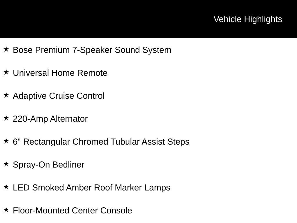 - Camera in the Center High Mount Stop Lamp (CHMSL) provides an elevated view of the truck bed from the back of the cab1