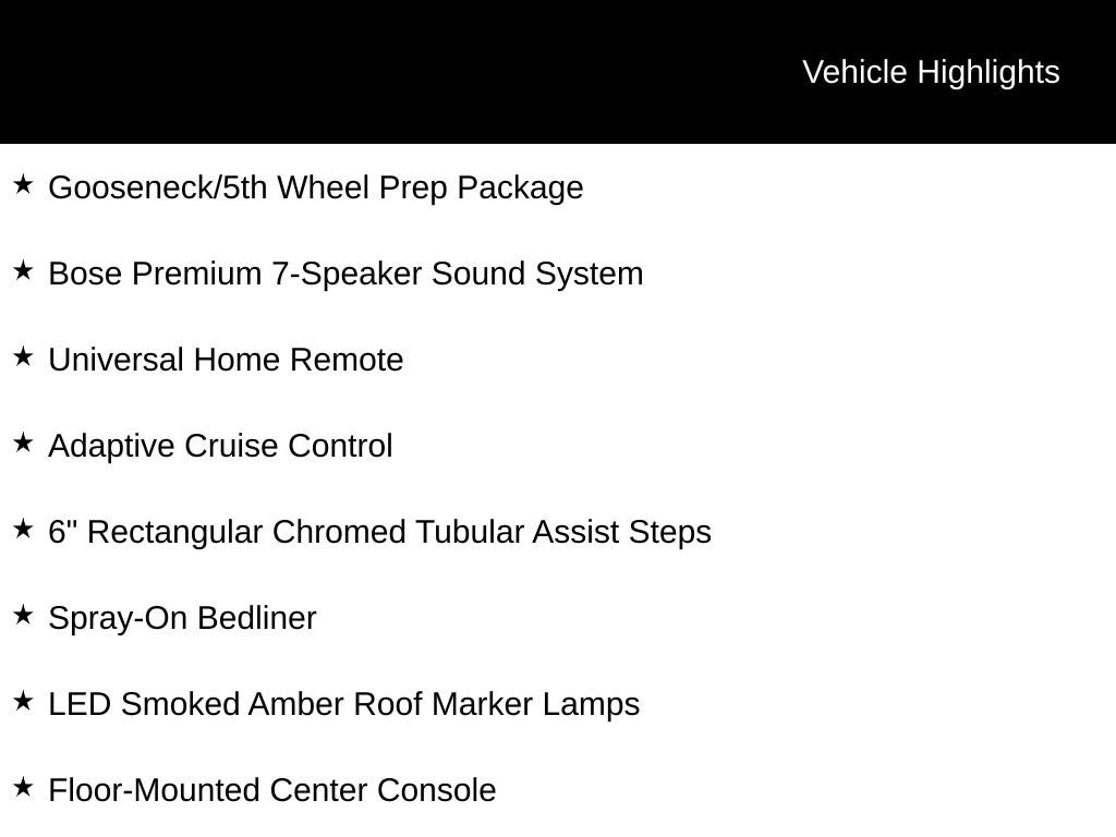 - Allows driver to see inside the cargo bed on the infotainment display to help with 5th wheel or gooseneck hitching and to check cargo